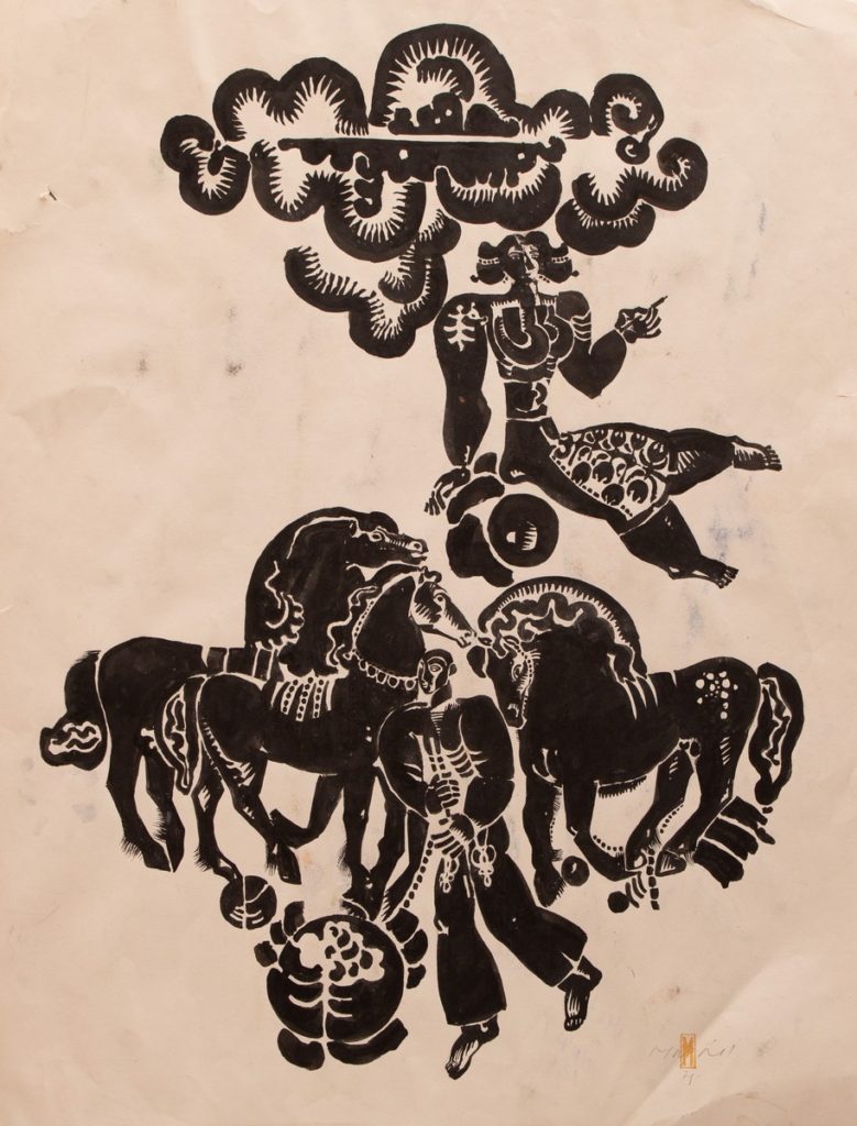 « Kompozíció II. A horizont felett » Kompozíció III. Leltári szám: 124 Méret: 85 x 64 cm Technika: rajz, tus