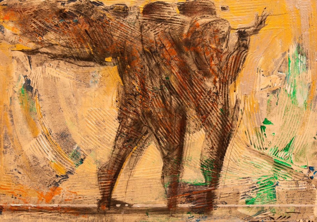 « Fenyőrönkös akt Receptív fal » Mythology of Iran Leltári szám: 1651 Méret: 50 x 70 cm Technika: akril