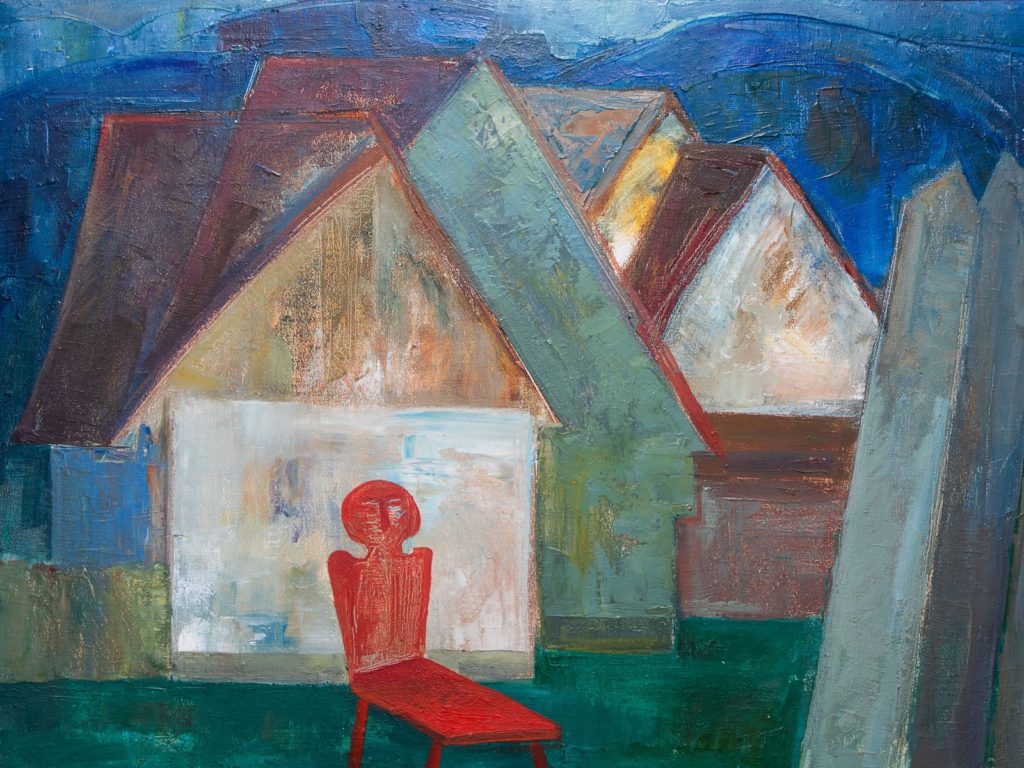 « Illusztráció Szárhegyről Élet I. » Șure cu scaun Leltári szám: 192 Méret: 65 x 81 cm Technika: olaj, vászon