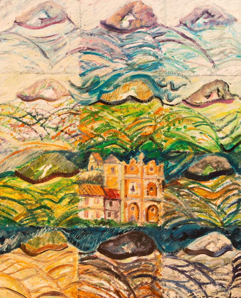 « Az élmény mítosza III. Gömbök a hegytetőn » Szárhegy non-stop Leltári szám: 843 Méret: 80 x 100 cm Technika: olaj, lemez