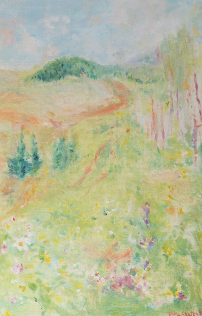 « Kilométer kőnél Táj Szárhegyről » Táj Szárhegyről Leltári szám: 849 Méret: 40 x 60 cm Technika: olaj, vászon